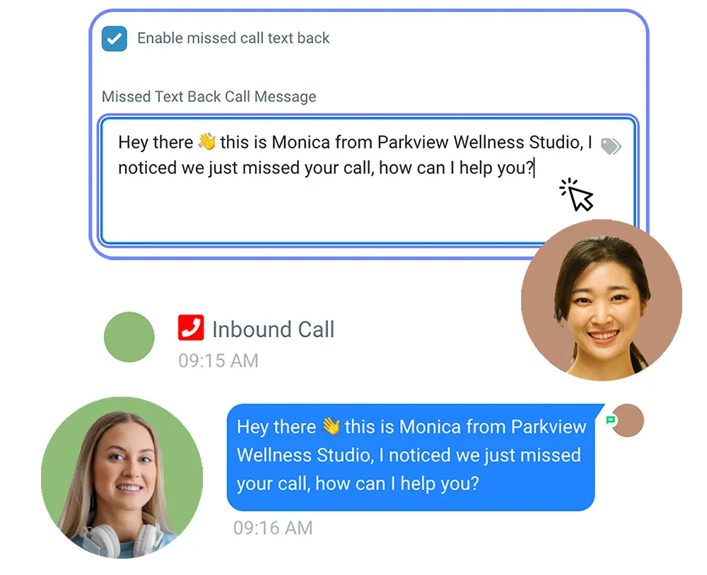 Most people won’t leave a voicemail, but they’ll respond to a text. This keeps the conversation going and turns missed calls into confirmed appointments.
